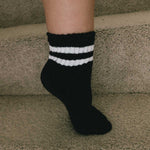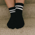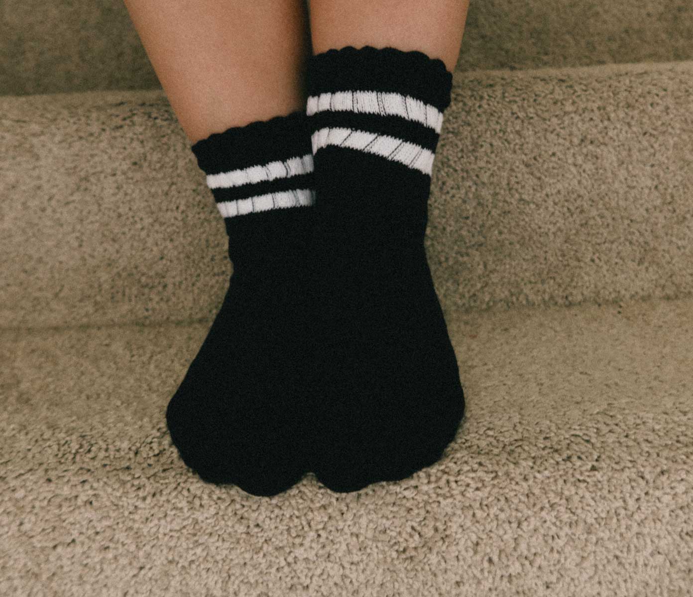 This quarter crew grip sock is a fun twist on your classic varsity sock. Designed to flatter and pair with your favorite workout sets. The grips will keep you from sliding. Additional terry cushioning only beneath the foot to keep you cool and comfy. Added arch support and compression to keep you feet feeling their best.